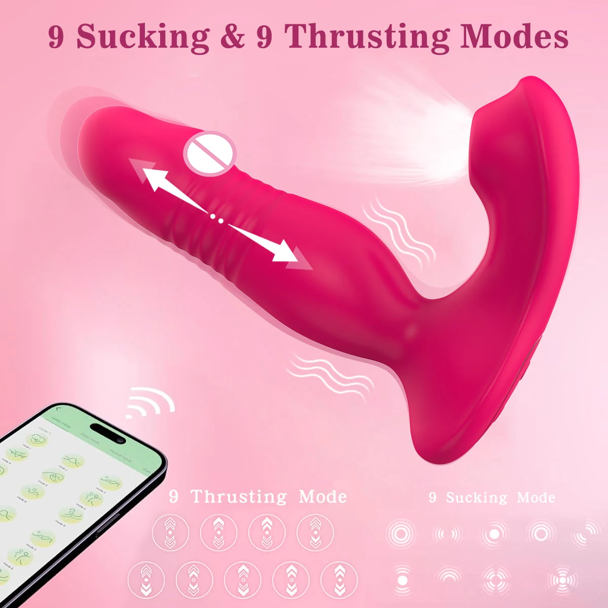 This female sex toys thrusting dildo with 9 sucking & 9 vibrating mode designed to provide unrivaled clitoral and G-spot stimulation. Flexible sucking provide intense clitoral pleasure, while the longer length and natural pulsation frequency of the telescopic dildo targets the G-spot for exciting mixed orgasms. Experience a higher level of sex pleasure, allowing you to customize your sensation personally and find the perfect rhythm for your desires