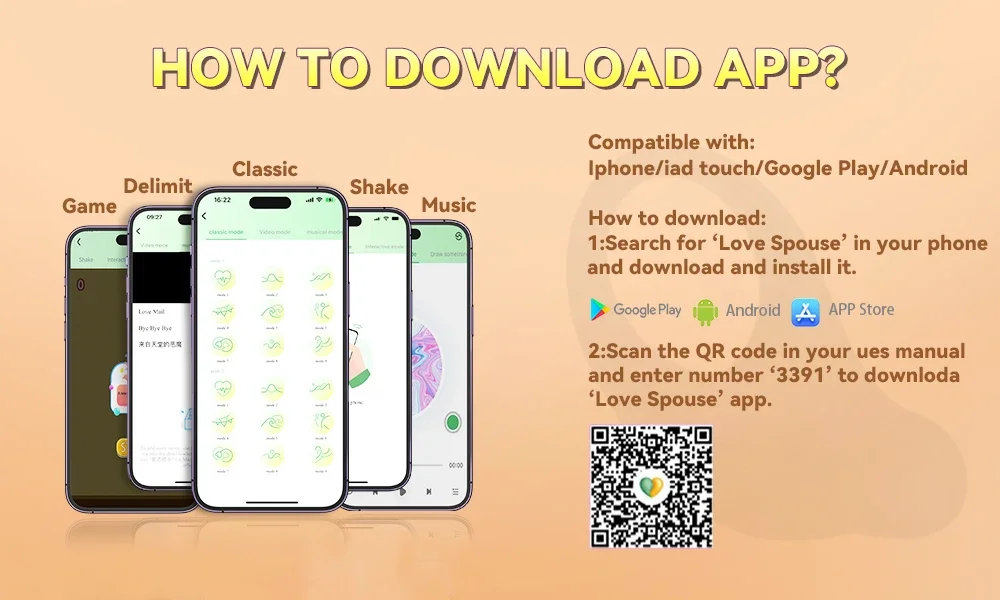 2 . Click " + " on App to scan QR or add product code 3391 to connect the vibrator to the APP.